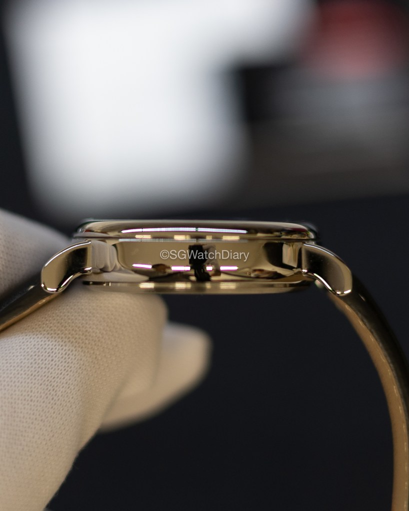 What’s even better is the numerals are in Arabic and green in colour. There is no lume to it though (okay, there is a debate between me and a co-worker, saying there is lume in the numeral markers) but the colour really complements well with the black dial and that silver tone colour. To top this off, the hour, minute and second hands are in silver (still entirely legible) so the overall package just so pleasing to see and from afar, it does have that Glashütte Original Senator feel to it. There is also a date window at 4 o’clock position.
