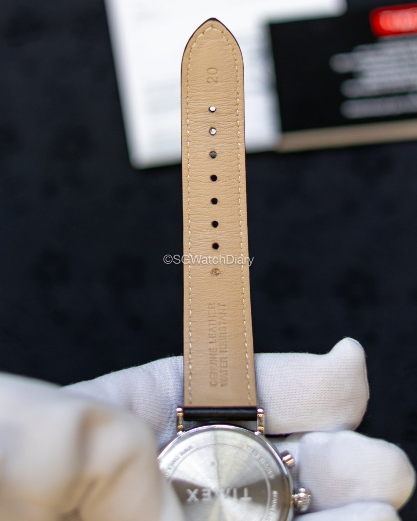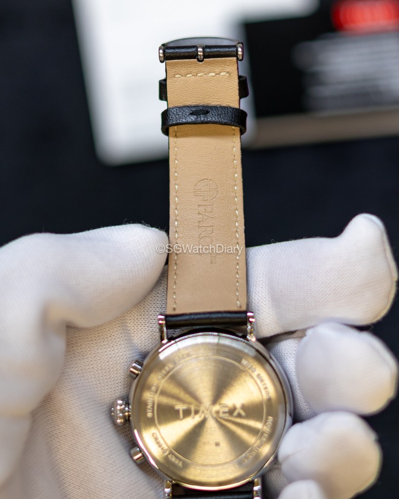 Behind is a closed casebook made of stainless steel, with “Timex” logo stamped on it. I feel it’s not subpar at all. Water resistance is at 30m so definitely some light water splashing from hand washing or rain are okay but no swimming.