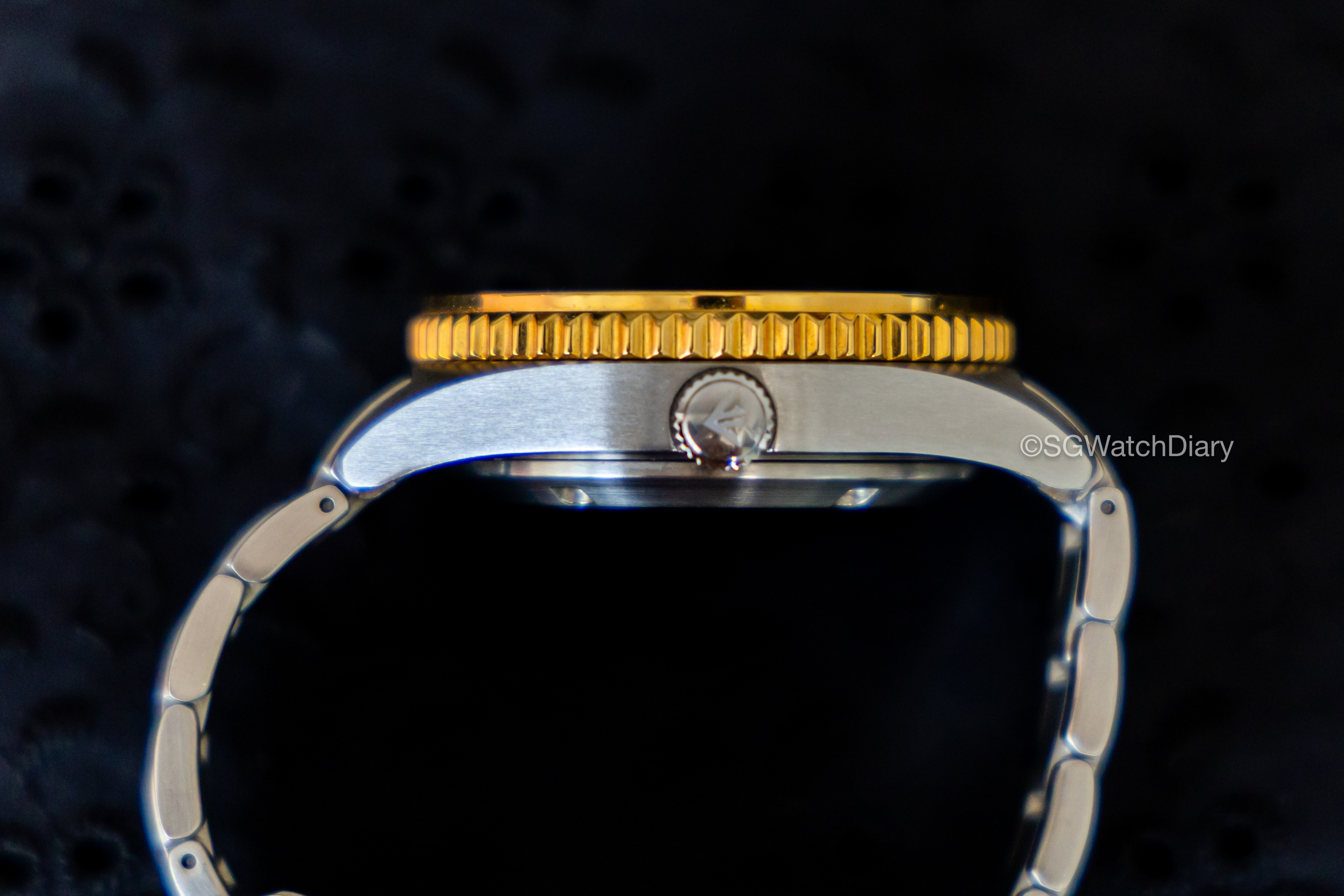 It features a 40mm diameter, a size that I would say suitable for many wrists and has a case thickness of approximately 14mm. At 14mm it is relatively thick but to me, it wasn’t a concern at all as I’m always in T-shirts. If you are one who wears long-sleeve shirts, the wearability may be a little affected.