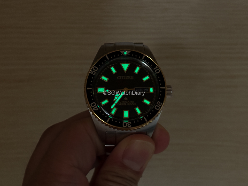 First of all, this watch is officially an ISO-certified 200m dive watch. This means you can go diving with it if you want too. Secondly, it sports a Kanji-English day which in my own opinion is pretty special and not all dive watches these days get Kanji for day display, not to mention Sunday display is in red! Thirdly, the lume is impressive with markers very clearly visible in dim lighting conditions after getting sunlight from the outdoors.