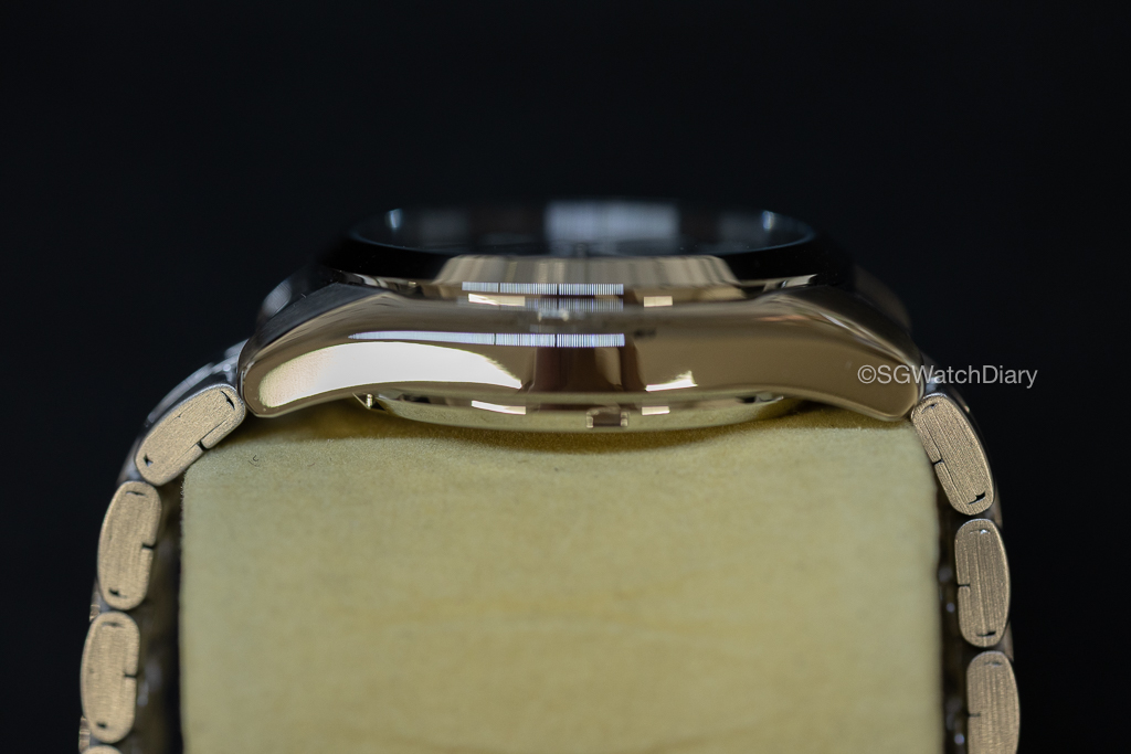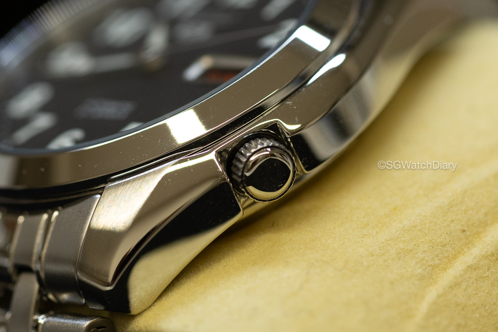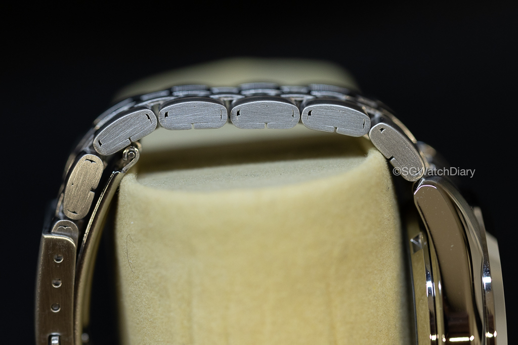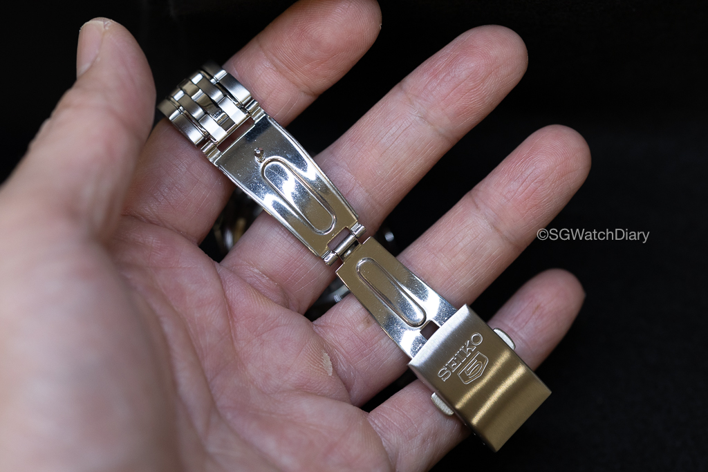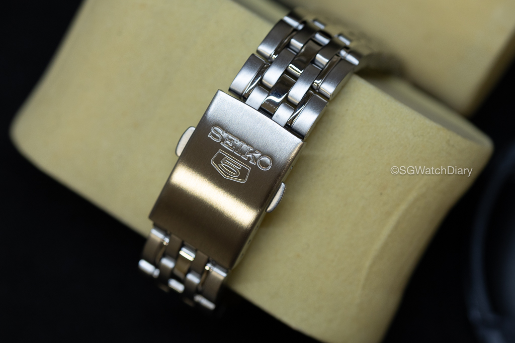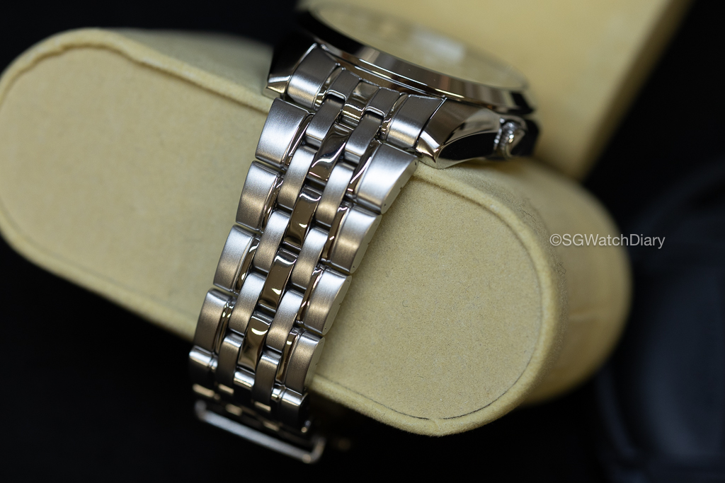 The links are half-brushed, half-polished giving it a balanced shine to the watch as a whole rather than bling bling. Not gonna lie, the bracelet feels low quality like when you handle it, you will know right away. The clasp is a triple-fold clasp that’s brushed on the outside and polished on the inside. It feels and looks cheapo but no choice, budget leh budget!