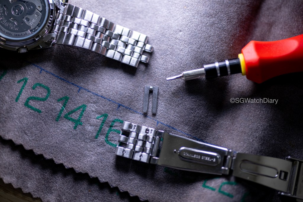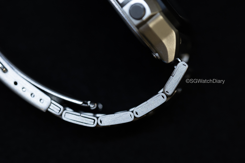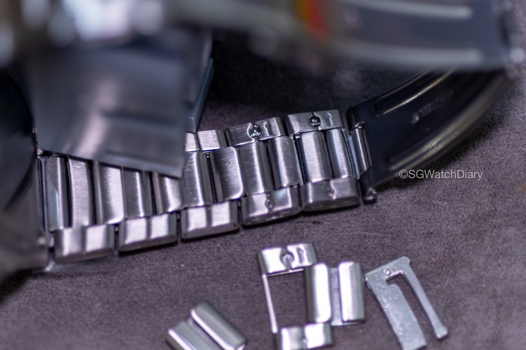 …the bracelet link is damn difficult to remove at first. Some links are easy some can vomit blood to remove but overall, once you know the trick it’s relatively easy but don’t forget it has quite a significant amount of micro-adjustments to play around with. The clasp is a Triple-fold Clasp and again for the price, I have no complains about it though it may feel cheap to some.