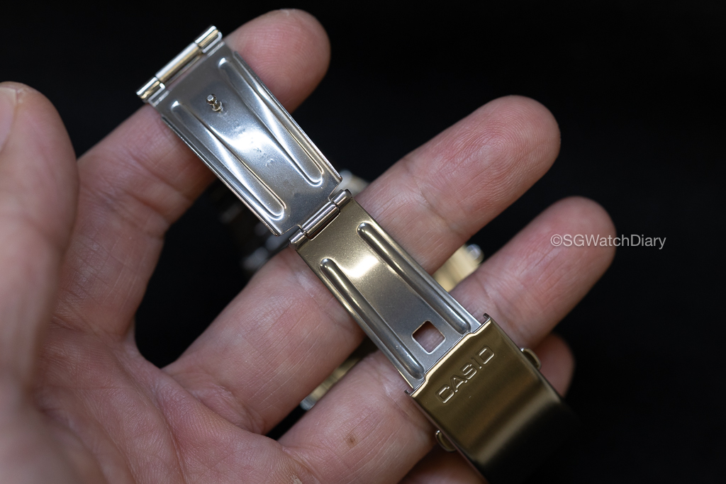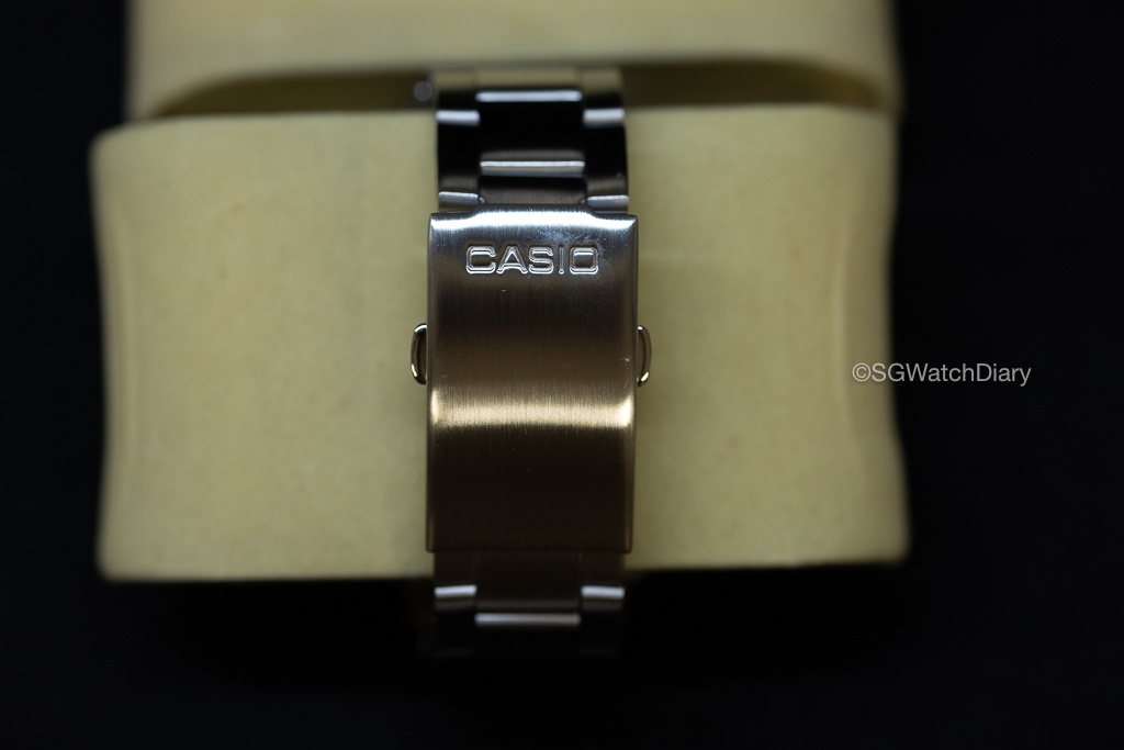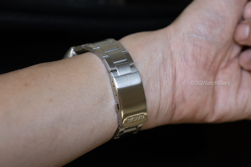 The watch material splits into 2 type with the case and bezel being Resin and the bracelet in Stainless Steel. There is nothing much to comment on the Resin material but to those who wore Casio watches before, you know how durable this case material is. This is my first time getting a Casio in Stainless Steel and I say it isn’t the best quality out there, I don’t have any issues with it because this is about SGD$37 during a sale and having a stainless steel bracelet is already very good lo. Of course don’t compare to Seikos or Rolex lah and the jingling of the bracelet, if you don’t wear like loose loose like uncle it won’t have that sound but…